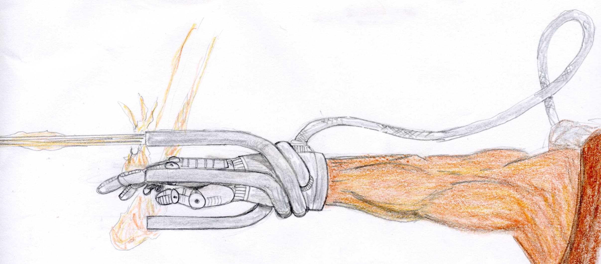 Arm Cannon or Marble Cannon is the common name given to the Atlan military’s primary weapon, the Personal Marble Cannon (PMC). PMCs vary in size, shape, and style but all operate according to the same basic principles. Smaller versions of the weapon are wrist and forearm mounted devices with one, two, three, or more barrels pointing forward and situated above the user’s wrist. The devices are designed to shoot small metallic or ceramic balls at high speeds and are capable of causing fatal injuries when necessary. The wrist and arm mounts stabilize the device and hold the ammunition. Larger versions are equipped with six or more barrels that wrap around a user’s hand and are connected to a backpack full of explosive ammunition which is fired at speeds up to 120 rounds per minute.